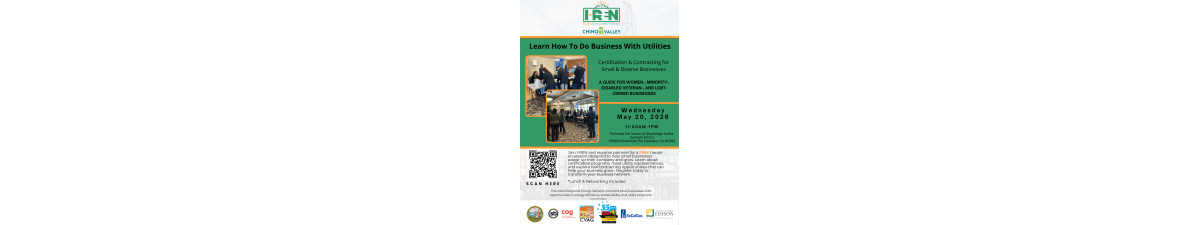 Join the Chino Valley Chamber of Commerce, the Inland Regional Energy Network (I-REN), and regional partners for a hands-on workshop designed to help small businesses access contracting opportunities in the growing energy and utilities sector.